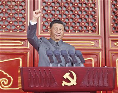 7月1日,庆祝中国共产党成立100周年大会在北京天安门广场隆重举行。中共中央总书记、国家主席、中央军委主席习近平发表重要讲话。新华社记者 鞠鹏 摄
