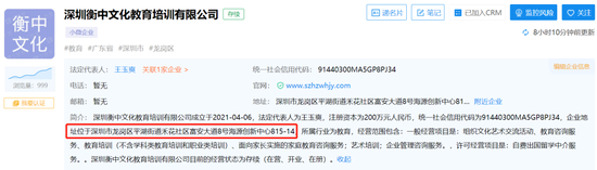 随后,券商中国记者实地走访了企业注册地址“深圳市龙岗区平湖街道禾花社区富安大道8号海源创新中心815-14”,该大厦的8楼并未发现深圳衡中文化教育培训有限公司。
