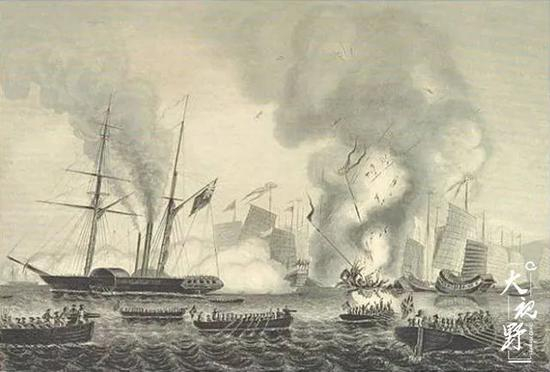 1839年,由英国东印度公司出资,利物浦莱尔德造船厂建造的复仇女神号下水。它以蒸汽为动力,以铁甲为装备,配备水密封舱,装载着两门安装在旋转炮架上的32磅大炮,5门6磅炮,还有许多枪支弹药。这些19世纪三四十年代的“顶级配置”,在第一次鸦片战争中出尽了风头。