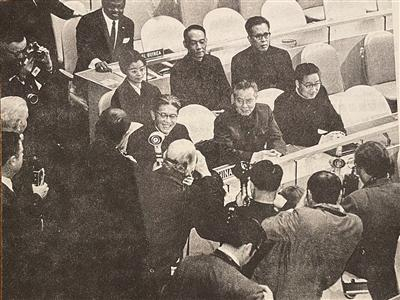落座后,一名外国记者问乔冠华能不能谈谈此刻的心情,乔冠华仰头开怀大笑。这个瞬间被相机捕捉,成为了中国上世纪70年代外交成就的定格。
