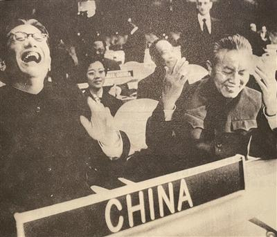 1971年11月15日上午10时15分,中国代表团成员气宇轩昂地走进会议大厅,团长乔冠华、副团长黄华等人依次在标有CHINA的席位上入座,会场上所有人都起立报以热烈的掌声。乔冠华落座了礼宾司长亲自为他拉开的中国名牌后的那张椅子。此时,有记者问:“乔先生,你现在坐在这张椅子里有何感想?”乔冠华听后给出了一个仰头大笑。记者不解,他进而解释:“我现在的心情不是已经回答了你的问题了吗?”