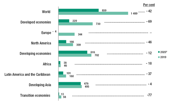 中国之所以去年成为第一大外资流入国,很重要的一个原因是流入美国的外资下降,北美地区下降了42%。随着美国疫情得到控制,美国很有可能再次成为第一大外资流入国。