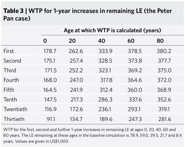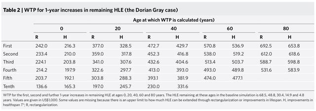 为了回答前述的一些重要问题,斯科特等人将角度转向经济学,而非传统的生物学。具体来说,他们使用统计寿命价值(VSL)方法,对从更长的寿命、更好的健康和衰老速度的变化中获得的收益进行价值评估。