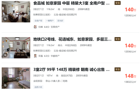 记者在安居客平台看到,徐州市区的不少二手房价格已超1.2万元/平方米,整体单价全线超过新建商品房价格。