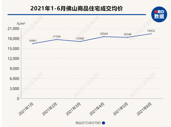 中指研究院数据显示,今年1-6月,佛山新建商品房销售均价从年初的16461元/平方米升至6月的19432元/平方米,上涨幅度达18%。