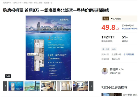 “一线精装海景房,买房报销机票、住宿,还能打折。”北海的北部湾一号项目置业顾问陈军把优惠和盘托出,“折扣是不断变大的,我们会组织团购,一起买房的客人越多,折扣越大。”