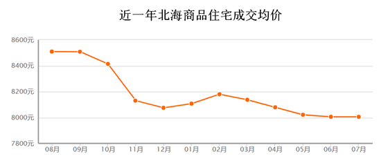 在开发商主动打折促销之下,北海市场的成交量自2月份开始有所恢复。据中指研究院数据,5月份北海新房销售套数约为2152套,恢复至2020年11月-12月份平均水平,但销售均价从最高峰8075元/平方米降至7280元/平方米,降幅高达11%。