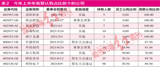 另据记者梳理,今年上半年发布员工持股计划草案的上市公司股权集中度都普遍较高,如美凯龙和三棵树,其今年一季度末前十大股东持股比例合计均在90%以上。同时,还整体存在上市公司董监高(高管)认购比例较多的现象。尤其是洛阳钼业,其员工持股计划仅为高管“开放”。