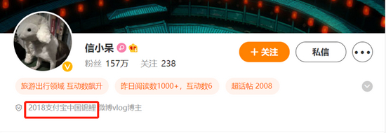 也正因为此,再也没有出现万名网友齐转她的微博求沾好运的盛况了。而她微博黄V下的那条简介,“2018支付宝中国锦鲤”,也早已成为了一个传说。