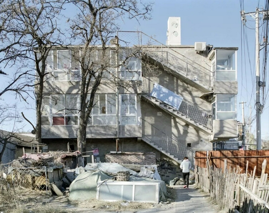 同样受到关注的,还有他在北京西四环外拍摄的城中村里的住房。因为出租时扩展空间的需要,这些房子的外部经常被房主搭建上额外的通道和空间。孙海霆路过的时候,能直接从房子的外立面看到搭建者对房子的用法和需求。在他看来,这些房子尽管有一些并不合规,但民间、野生的建筑解决方案让人觉得有意思。