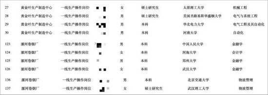 近日,网传的《河南中烟工业有限责任公司2021年度大学生招聘拟录用人员公示》中,拟录用人员的毕业学校和录用岗位“一线生产操作岗位”间的强烈反差,引发网友讨论。