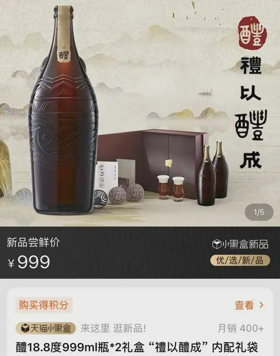今年5月,华润旗下的雪花啤酒在夏季推出超高端啤酒“醴”,售价999元一盒(两瓶),单瓶售价约500元。而且这款啤酒只在雪花官方旗舰店和京东自营等线上渠道销售。但线上数据显示,上架两个多月以来,醴盒的销量惨淡。
