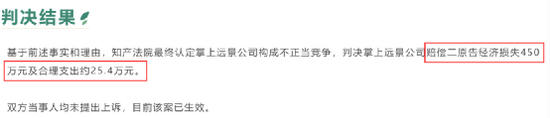 因开发“微信自动抢红包”软件,被告掌上远景公司被判构成不正当竞争,赔偿二原告腾讯科技公司、腾讯计算机公司(简称腾讯公司)经济损失450万元及合理支出约25.4万元。据了解,双方当事人均未提出上诉,目前该案判决结果已生效。