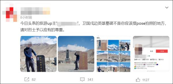 旅游博主在戍边英雄墓碑前摆pose 官方介入、军报发声