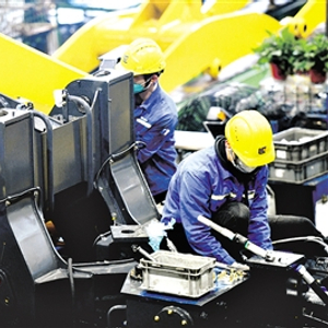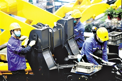 柳工集团技术人员正在装配作业。资料照片