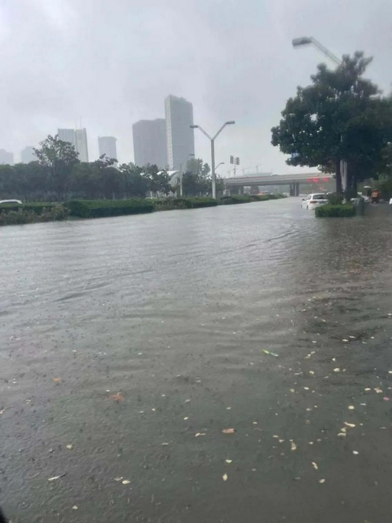 接近晚上七点,公交车在积水里缓慢行进。王琪看着窗外,本以为是场普通的雨,就是大一些。十几分钟后,车子突然刹停。王琪抬起头,发现刚开到沙口路地铁站附近。车子停靠在路边,有乘客站起来询问,又凑到前排往外看,水已经满了上来,车不能再往前开了,前面的隧道口积水很深,水的流速很快。