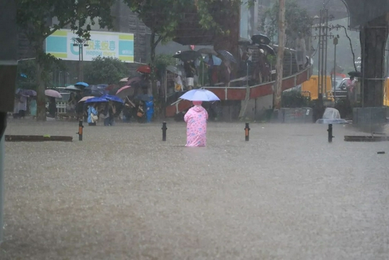 打伞出来的瞬间,整个身子被雨水吞没,我身高快一米八,水最深的地方没过了我腰。雨直接打在头上,一度让我以为伞是漏的。