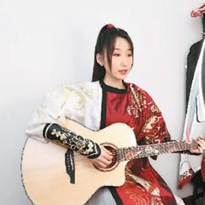 某主播在家中进行国风音乐直播。 新华社记者 任 超摄