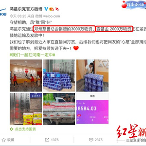 或许是为了回应大众的质疑,7月25日凌晨3点25分,鸿星尔克通过官方微博公布了其捐赠物资的信息:“鸿星尔克通过郑州慈善总会捐赠的3000万物资、壹基金2000万物资正在紧罗密鼓地运输及发放中!”。