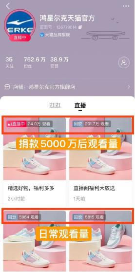 截图自鸿星尔克官方旗舰店的淘宝直播