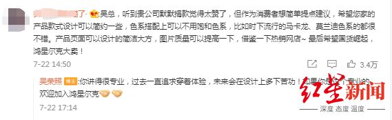 当时,吴荣照回应该网友称,过去一直追求穿着体验,未来会在设计上多下苦功。“如果你是这个专业的,欢迎加入鸿星尔克。”