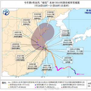 受台风外围偏东气流和西风槽东移影响,预计26到29日,我省大部多阵雨、雷阵雨,其中,东南部强降水时段在27到28日,东部、东北部强降水时段在28到29日。