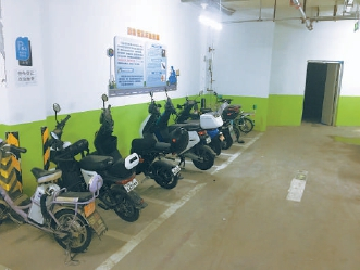 富贵园三区的地下自行车库,电动自行车有序停放。