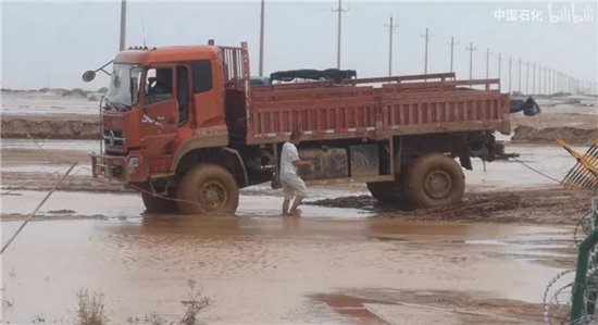 塔克拉玛干沙漠遭遇洪水 中石化三万套设备被淹