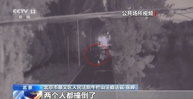 北京市顺义区人民法院牛栏山法庭法官 张婷:行人由南向北步行,往这边走。这时候,骑自行车的人出现了,然后双方发生了事故,两个人都撞倒了。