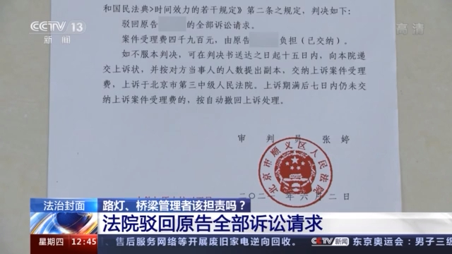 北京市顺义区人民法院牛栏山法庭法官张婷:就现场本身来讲的话,并不像原告所述的是漆黑一片,也就是说这种情况下开不开路灯已经不是起这种决定性的作用了。我们认为,原告认为被告不开路灯的这个行为,实际上是与事故的发生之间没有直接的关联性的。