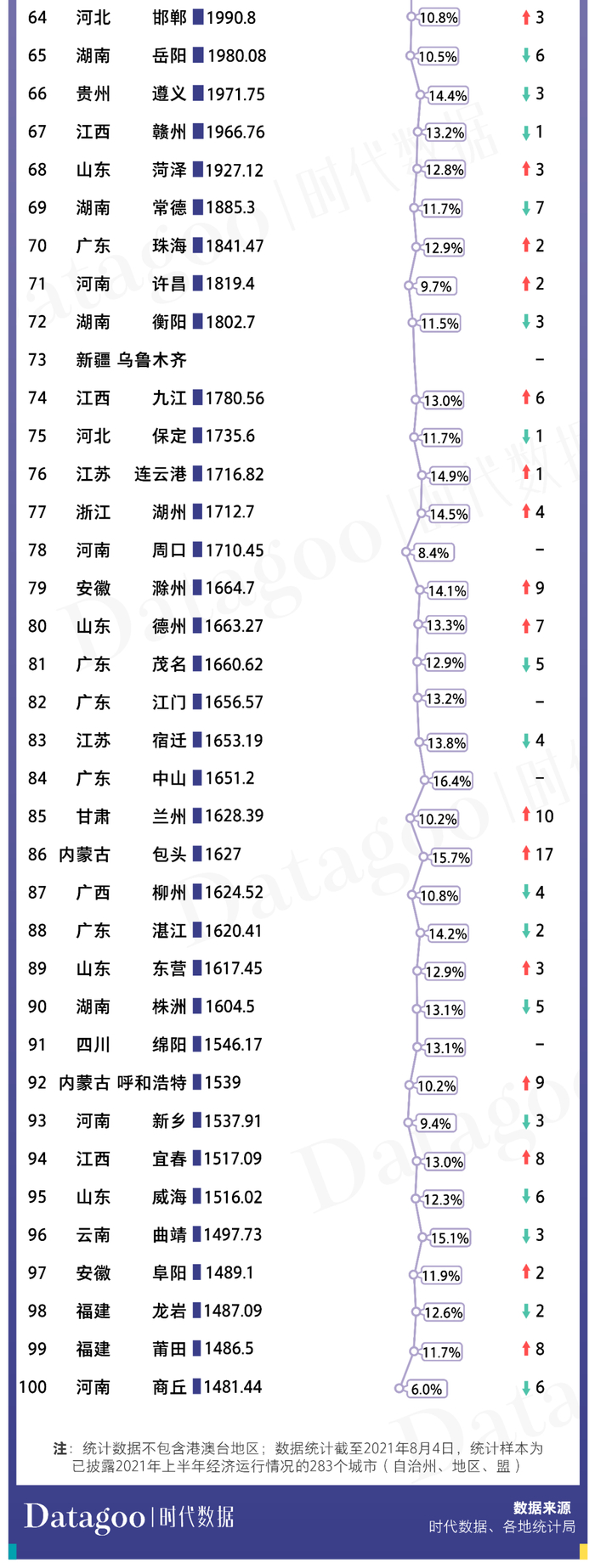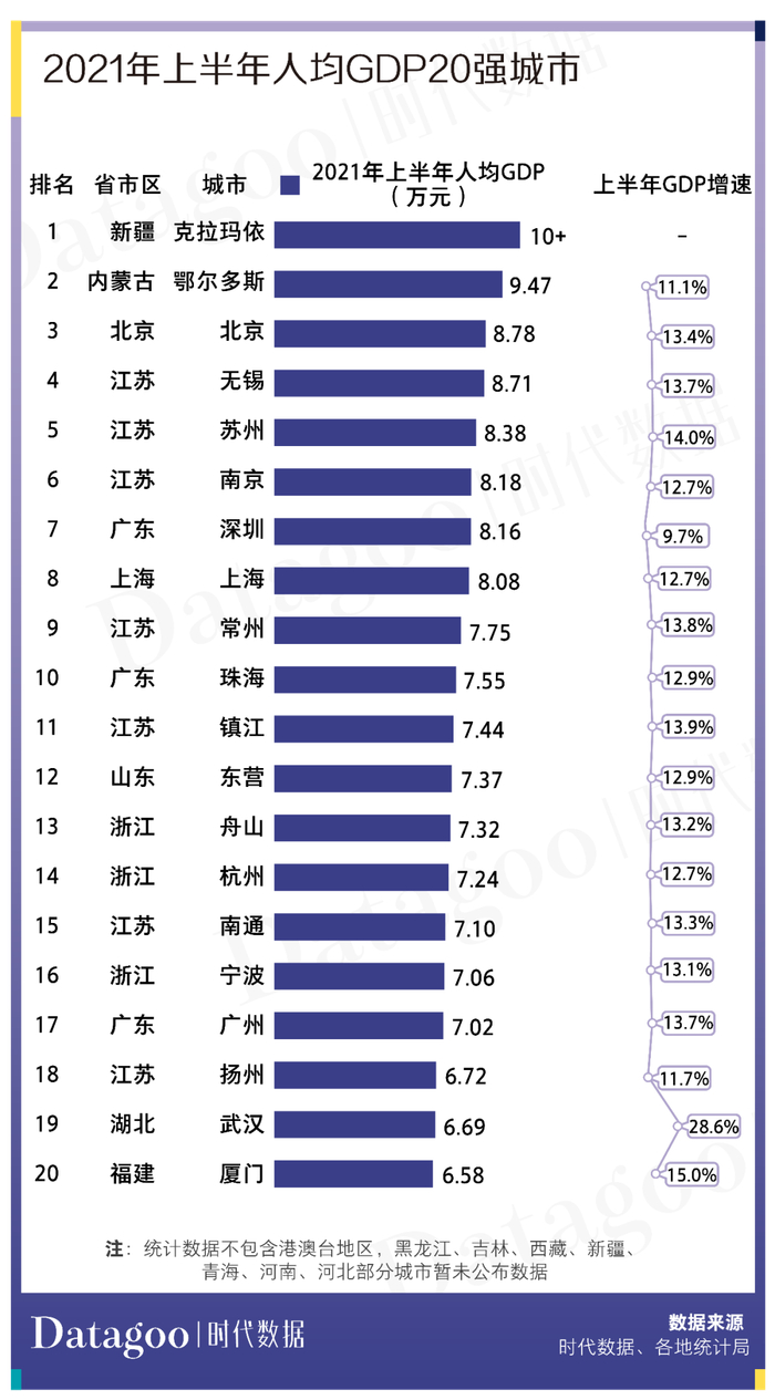 2021年上半年GDP百强城市出炉:湖北13市增速亮眼,克拉玛依人均GDP位居第一