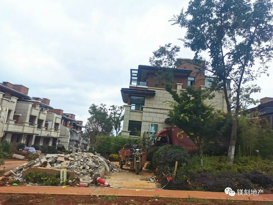 《每日经济新闻》记者在实地走访中看到,经过近3个月的拆除,部分别墅区已夷为一片废墟;曾经标价1.99亿元,占地800平方米左右,坐在家里就可以看滇池的楼王已再难觅曾经的辉煌,徒留一地建筑垃圾;至于曾经壕气万千的粉色售楼部更是早已不见踪影……
