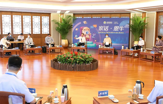下午,王玉锁主席与新奥新智、行业公司、智慧产业群的代表们齐聚一堂,召开“家话·恩牛”家庭会,共同畅想恩牛健康成长路。