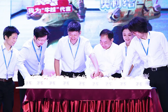 王玉锁主席和恩牛网研发团队代表汪一鸣、王静媛、于晓航、丁宜人、袁文科一起,上台分切新生蛋糕,共同分享喜悦和幸福。初生的恩牛网将带着新奥人“以物联促进智能、用智能提升产业”的殷切希望,开创产业智能物联时代的光辉未来。