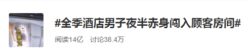 惊魂一夜!全季酒店裸男凌晨闯入女住客房间,房门形同虚设