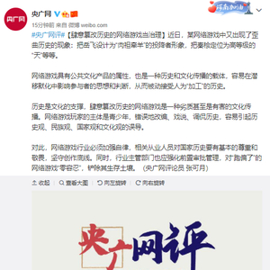 央广网评“江南百景图”网游:肆意篡改历史的网络游戏当治理