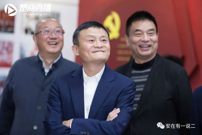 2019年12月楚商大会上,冯仑、马云、刘永好这儿三位企业家老友被抓拍。