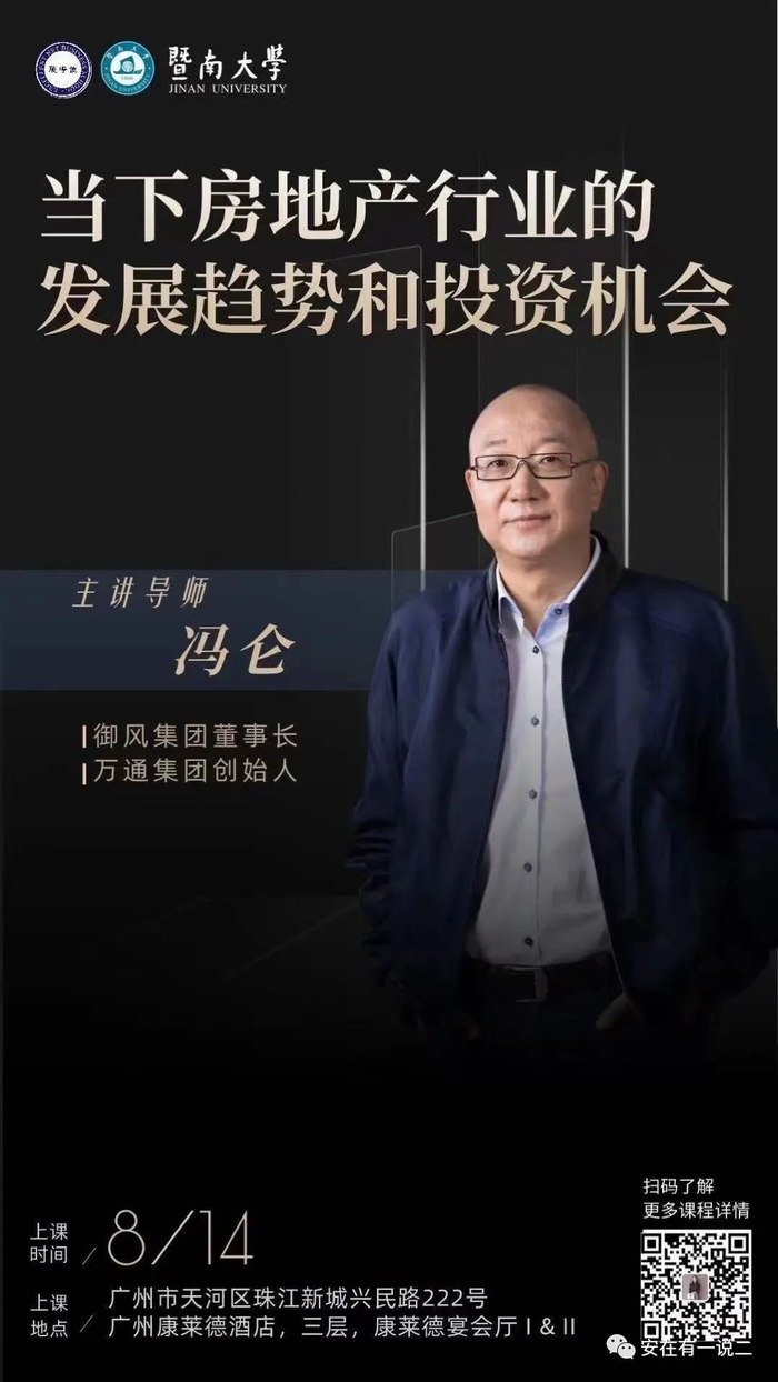 发文当时,冯仑刚刚登上飞机按约定行程出差南下,作为主讲导师,准备去广州参加今天暨南大学一场关于房地产的讲课。