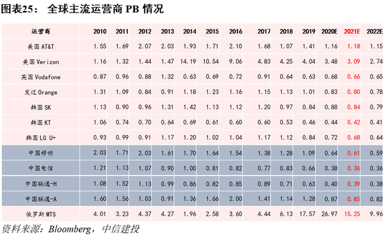 三大运营商估值处于历史底部,港股低于欧美韩主流运营商