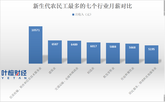 从整体来看,能够从事信息技术、软件服务的农民工,绝对是高收入群体。月平均收入高达10571元,月收入最低的修理和其他服务业,月均工资只有5195元。
