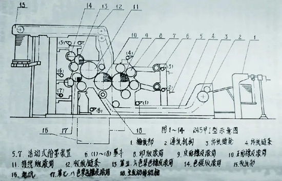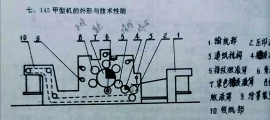 平凸印一版四色接纹印钞机,即“145 甲型机”示意图