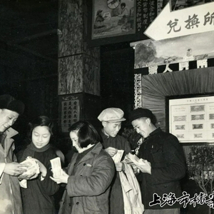 1955年,上海市民在兑换新版(第二套)人民币(上海市档案馆藏)