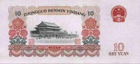 第三套人民币拾元券正面图案:人民代表步出大会堂(又称“大团结”)