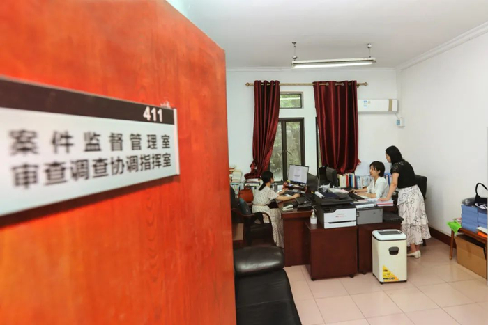 宜昌市纪委监委案件监督管理室的干部们正在进行党风廉政意见回复工作的审核