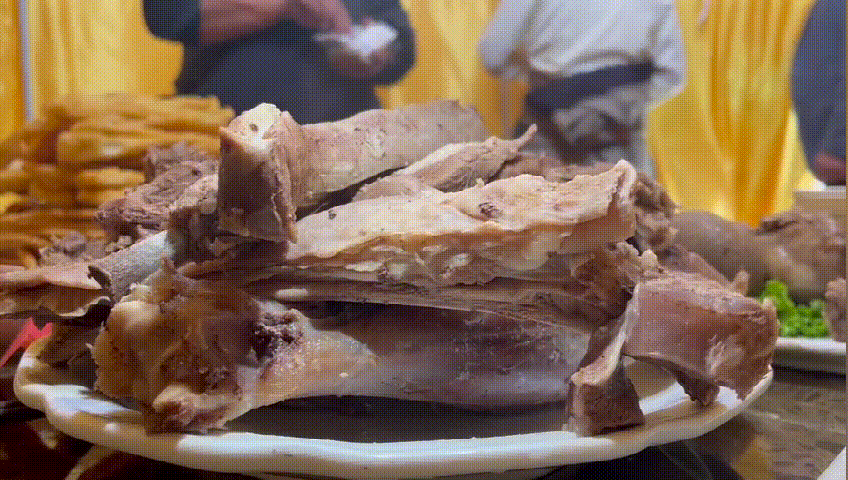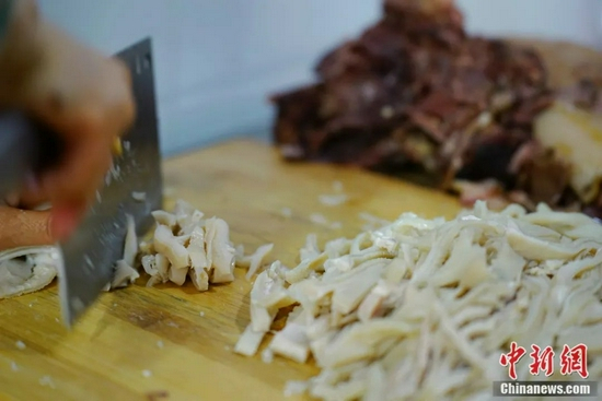 煮熟后再炕的羊肉肉质更加酥软,
