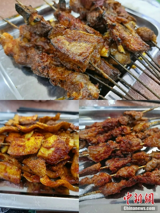 肥瘦搭配的羊肉串,