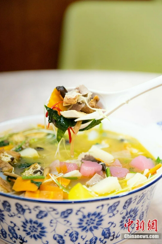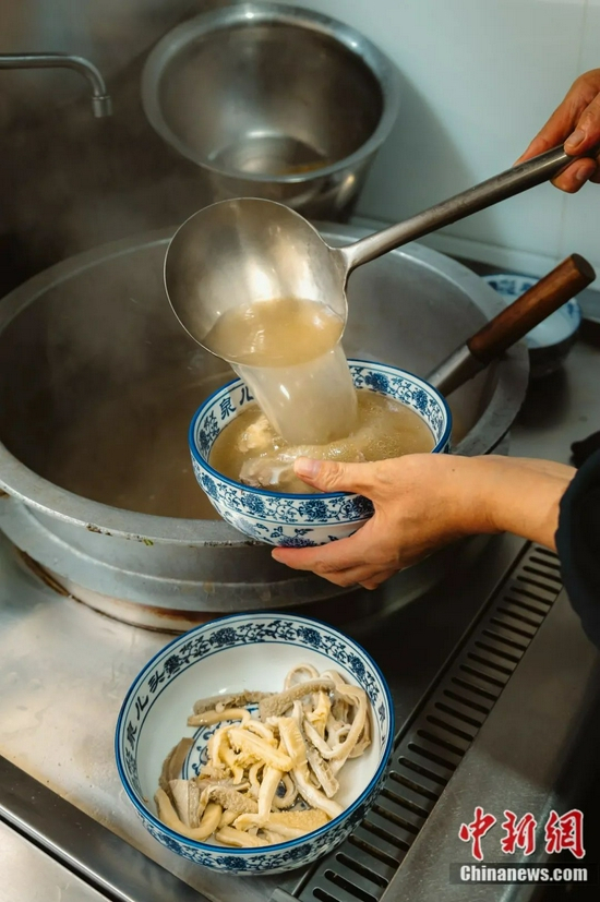 用羊头、骨髓、羊心熬制的汤头浓香可口,