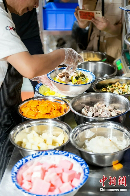 加入经过煮、熬、精炼而成的羊杂,