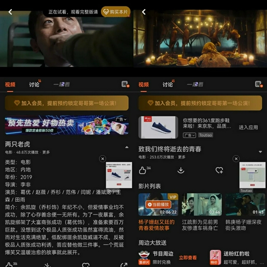 爱奇艺、优酷截图