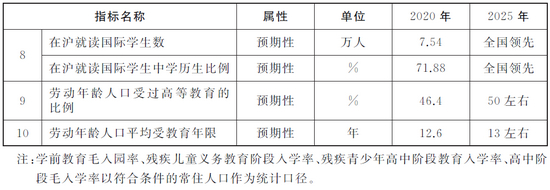 到2025年,教育现代化全面深入推进,实现上海教育更加包容、更具活力、更大开放、更高品质发展,高质量教育体系总体建成,教育事业发展和人力资源开发主要指标接近全球城市先进水平。